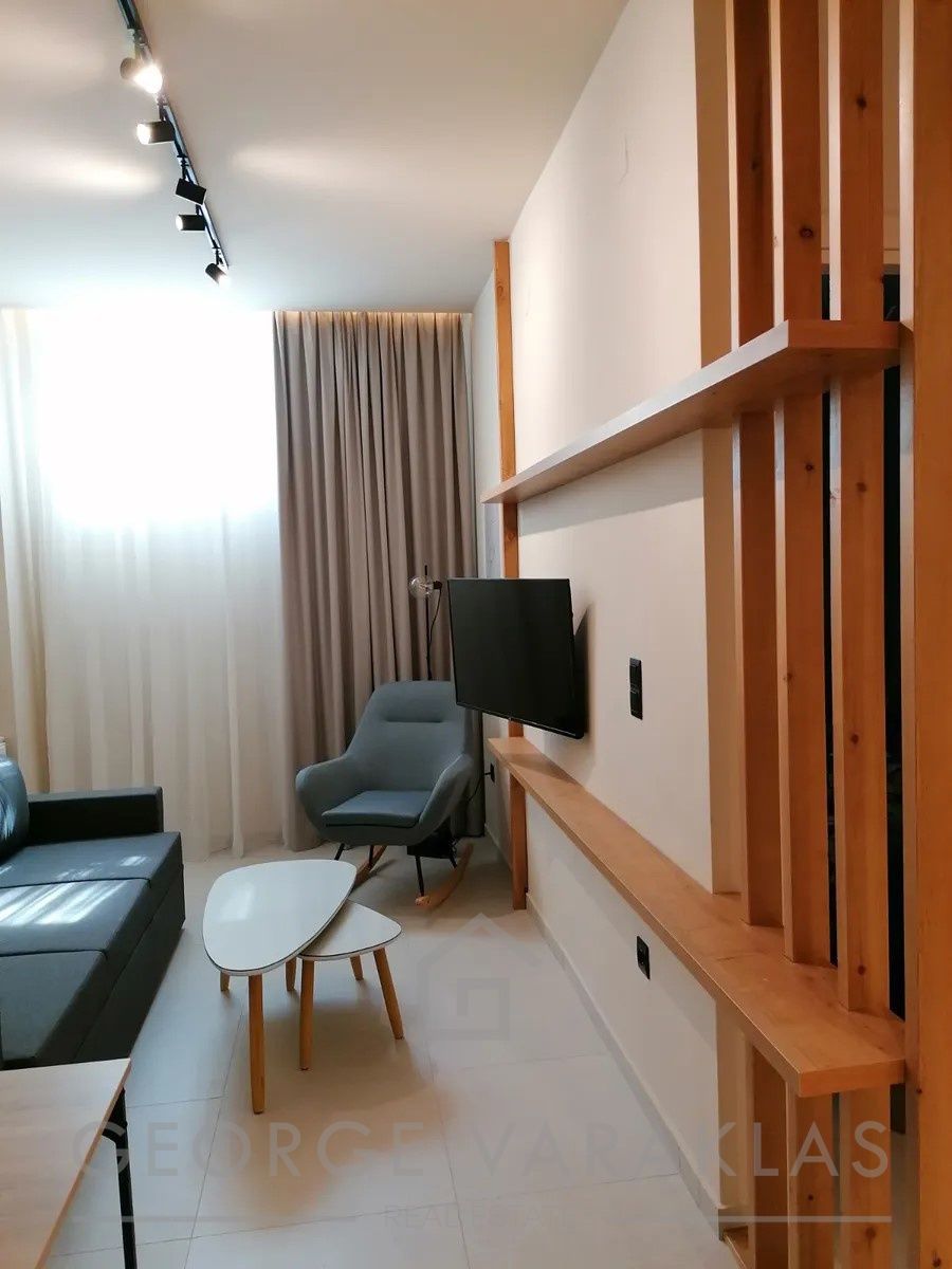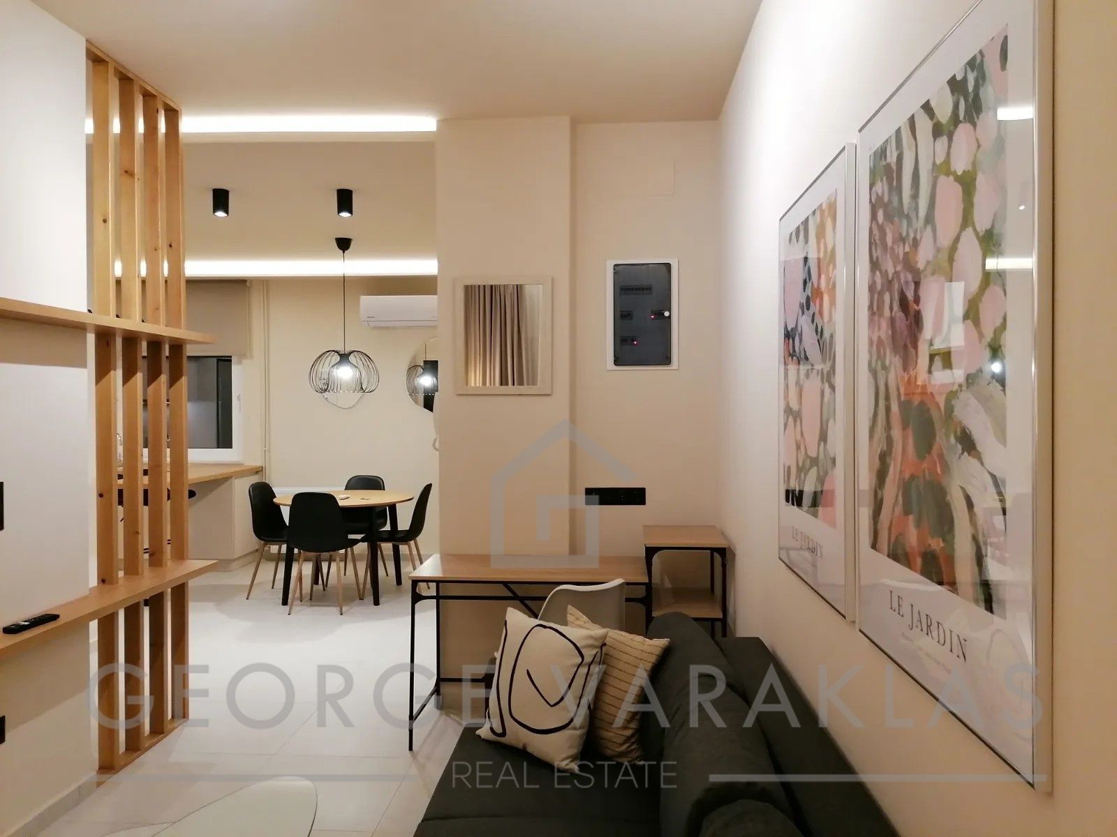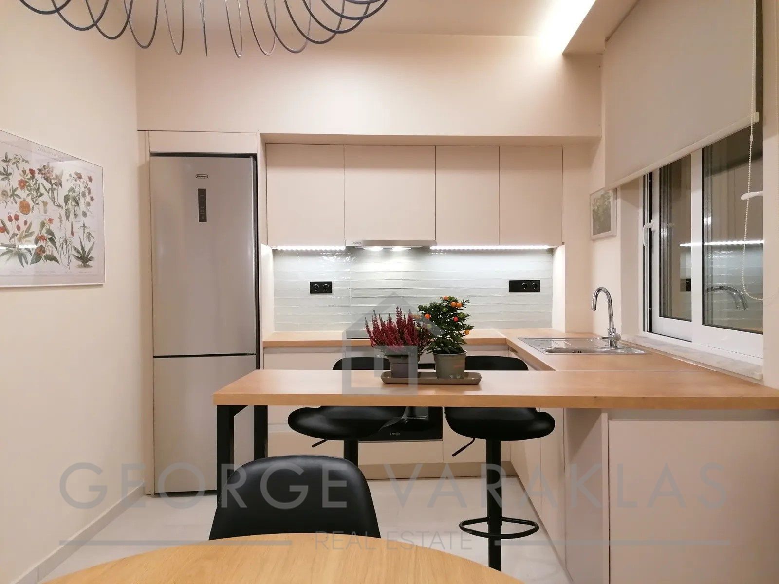 Αποτελείται από 1 υπνοδωμάτιο, 1 μπάνιο, κουζίνα, σαλόνι, πλήρως ανακαινισμένο το 2023, με σύγχρονες παροχές και εξοπλισμό. Διαθέτει κεντρική θέρμανση με πετρέλαιο, κλιματισμό, κουφώματα αλουμινίου με διπλά τζάμια, ενεργειακό πιστοποιητικό Γ και δάπεδα από πλακάκι.