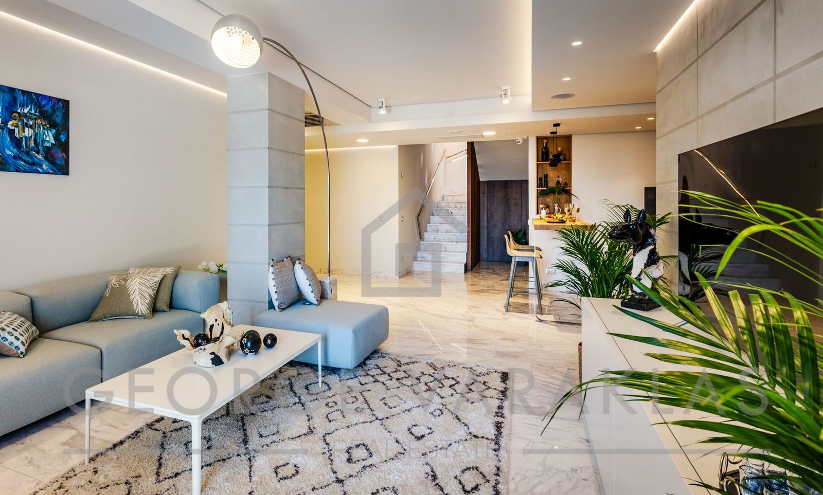 Αναπτυγμένη σε τρία επίπεδα, η βίλα διαθέτει: