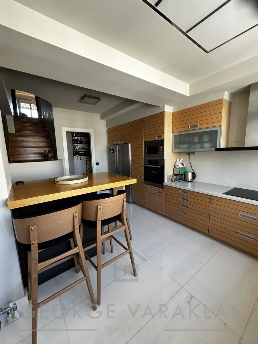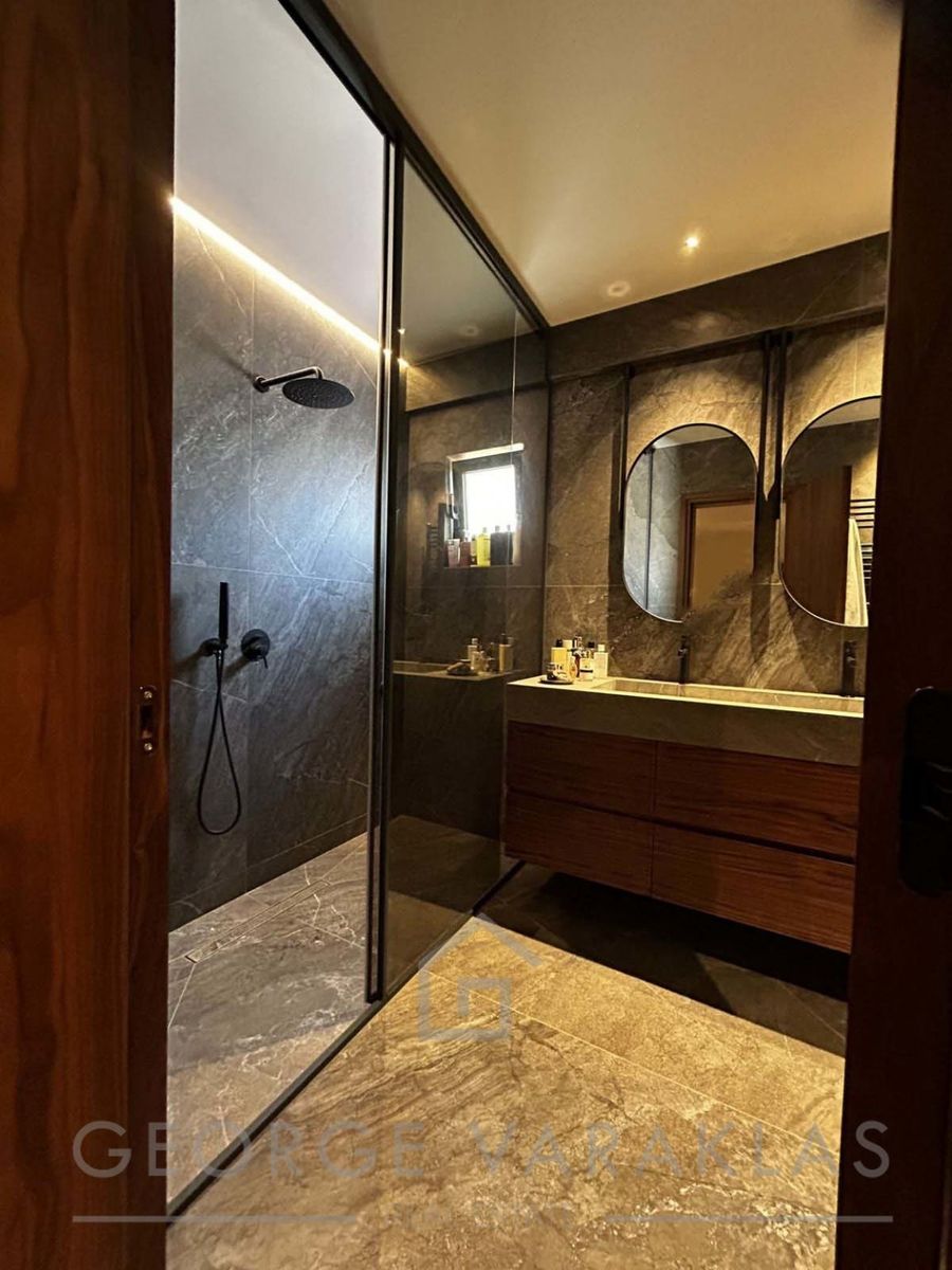 Η κατοικία ανακαινίστηκε πλήρως το 2024, διαθέτει ανεξάρτητη θέρμανση με αντλία θερμότητας, τζάκι, A/C, αποθήκη, κλειστή θέση στάθμευσης και ανελκυστήρα. Τα κουφώματα είναι αλουμινίου με διπλά τζάμια και τέντες, τα δάπεδα είναι μάρμαρο στους κοινόχρηστους χώρους και ξύλο στα υπνοδωμάτια, ενώ η κουζίνα είναι επώνυμη ιταλικής κατασκευής.